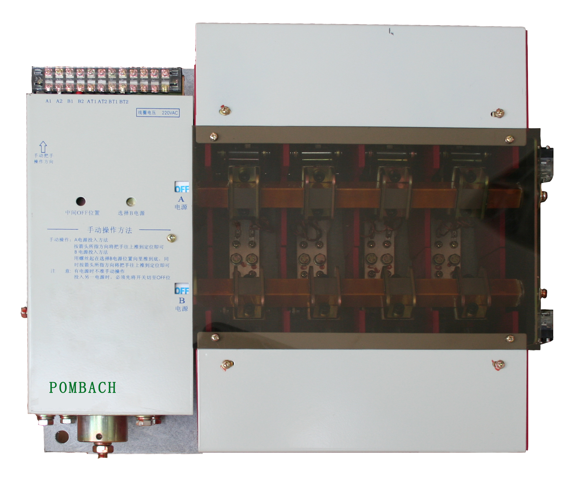 CBH-S2系列开路转换致力于更高要求的关键电力场合,,广泛应用于机场、、酒店、、、、通讯、、、、医院等低压双电源切换,,,运用自行研发经长期使用证明的高性能电磁线圈作为转换机构,,使得每一额定容量自动转换开关均拥有快速转换能力,,转换速度快且稳定。。。主触头优异的带载切换能力,,,不论负载是电动机或是电子式变频器,,对于尊龙时凯来说,,,转换任何负载都是轻而易举的事,,,,它是业界真正的电磁线圈操作、、、、机械互锁型双投转换开关。。。